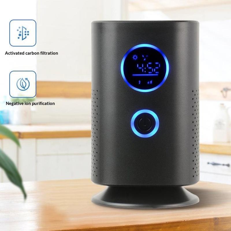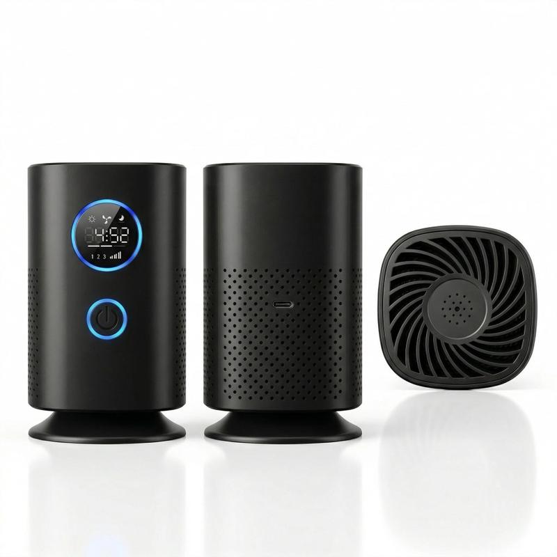 The H1 desktop air purifier is designed for users who want a compact air cleaning solution for smaller personal spaces such as bedrooms, desks, cars, and home work areas. With negative ion technology, a multi-stage composite filter, and a compact rechargeable design, it helps improve everyday air quality while fitting neatly into modern spaces. Its black finish and OLED display give it a clean, practical look that works well on a bedside table, office desk, shelf, or car console.