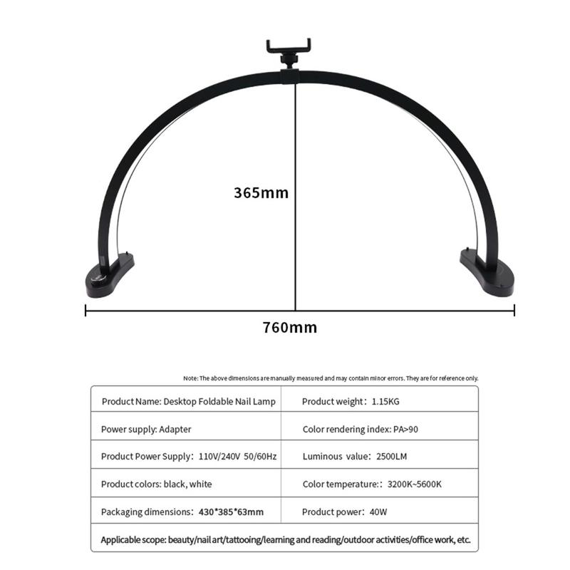 Create clean, flattering light for precision work with the HD-M11X 28-inch U-shaped shadowless LED fill light. Its semi-circular design helps reduce harsh shadows, making it ideal for beauty treatments, nail art, tattoo work, content creation, and detailed desk tasks. With 280 dual-colour LEDs, you can switch between warm and cool tones and fine-tune the mood from 3200K to 5600K. A high CRI >90 helps colours look natural and accurate—especially useful when matching makeup tones, choosing nail colours, or working with skin tones. The lamp delivers up to 2500 lm brightness at 40W, and includes desktop brackets plus a phone holder accessory set for a tidy workstation setup.