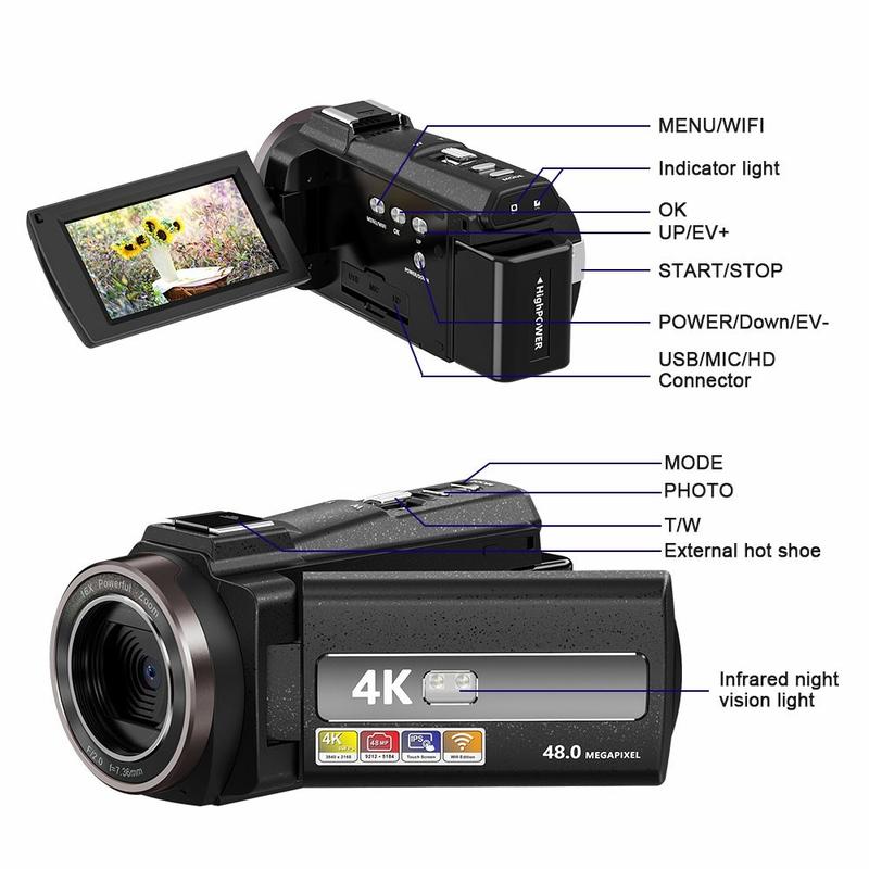 HDV-254KM 4K Digital Video Camera - 48MP Ultra HD Camcorder with 3.0" Touch Screen, 16X Zoom, IR Night Vision and WiFi