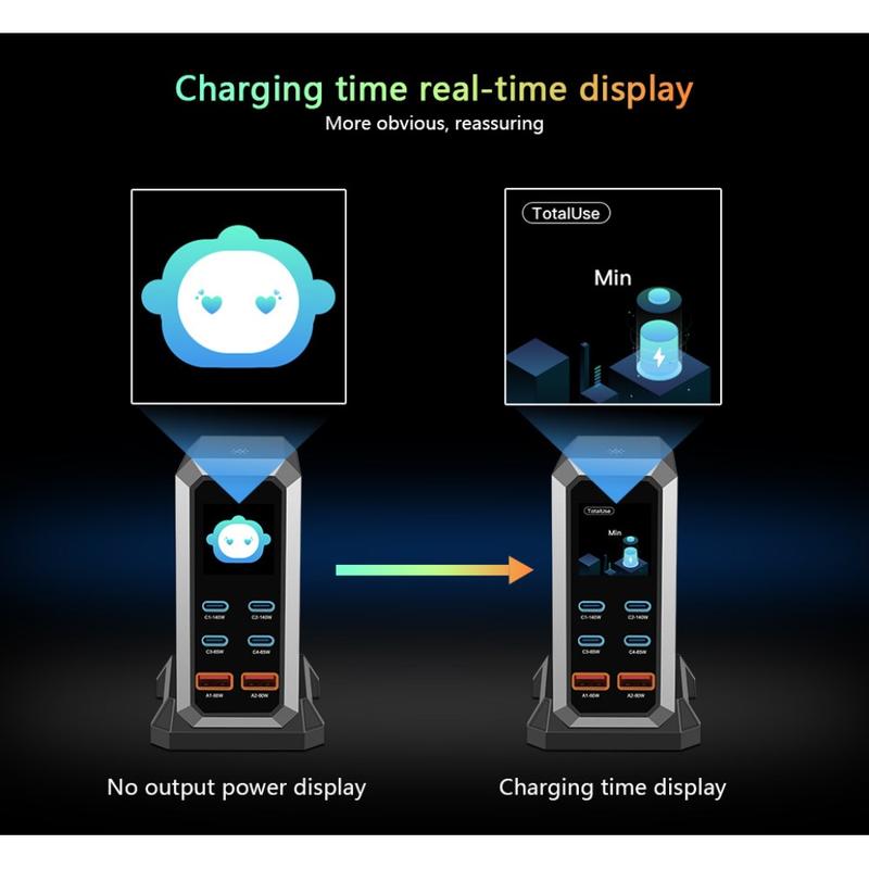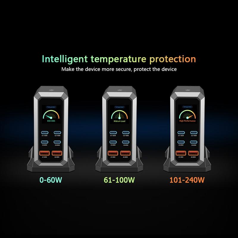 HHW 240W GaN 6-Port USB-C Charger Station - PD3.1 Fast Charging Hub with Real-Time Color Display