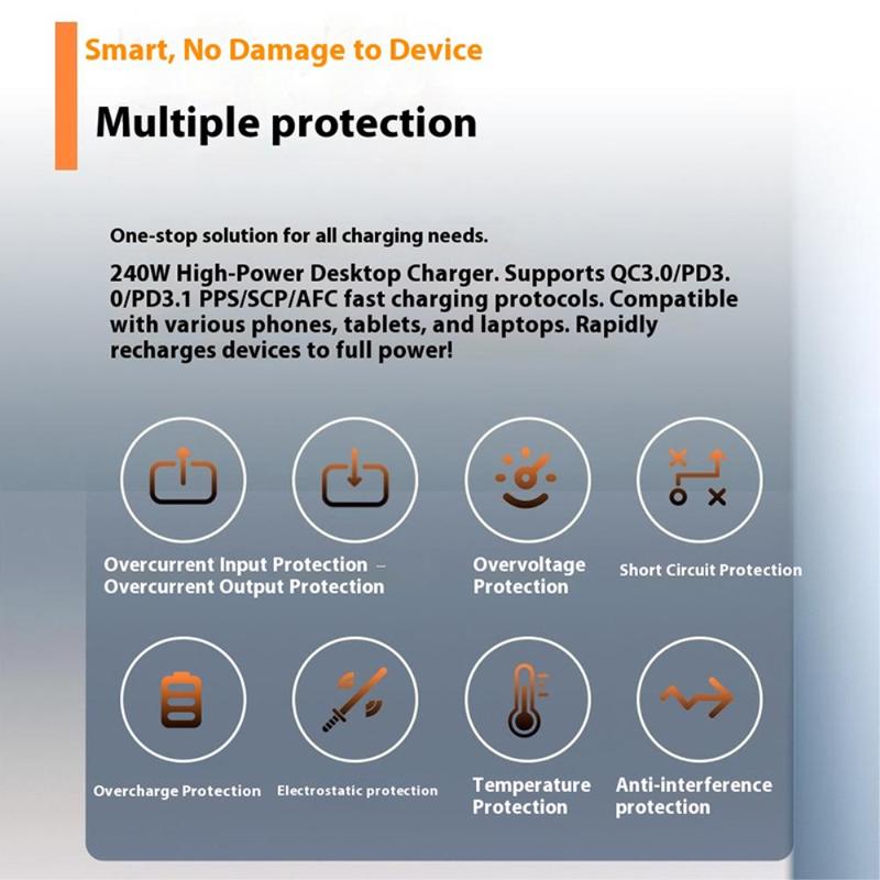 - Massive 240W Total Power - Delivers simultaneous fast charging for multiple high-demand devices.