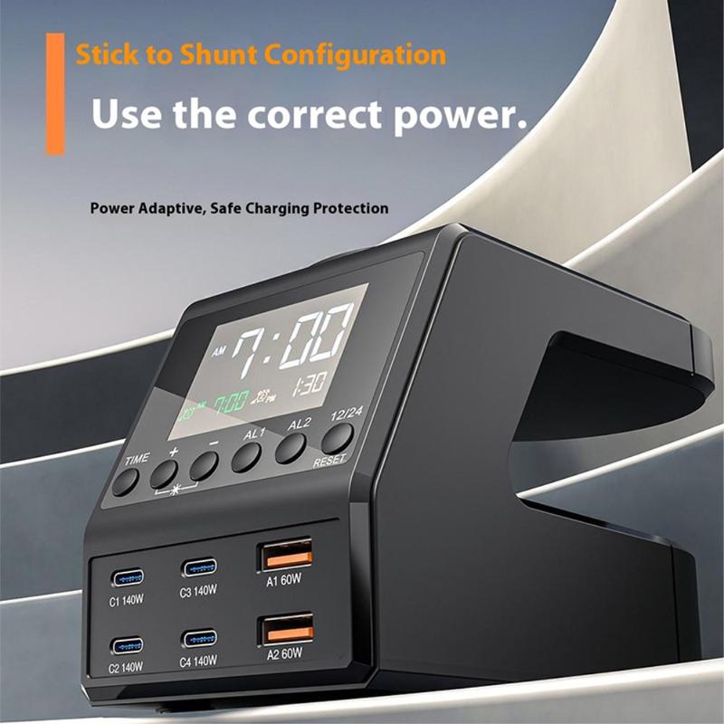 Equipped with four Type-C ports (each supporting up to 140 W) and two USB-A ports (up to 60 W), this station easily powers six devices at the same time. From laptops and tablets to wearables and accessories, every port is engineered for maximum performance and energy distribution.