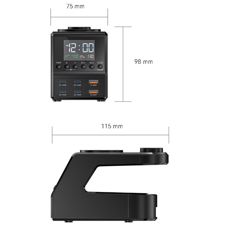 HHW H688 6-in-1 Wireless Charging Station with Alarm Clock - 240W - Black