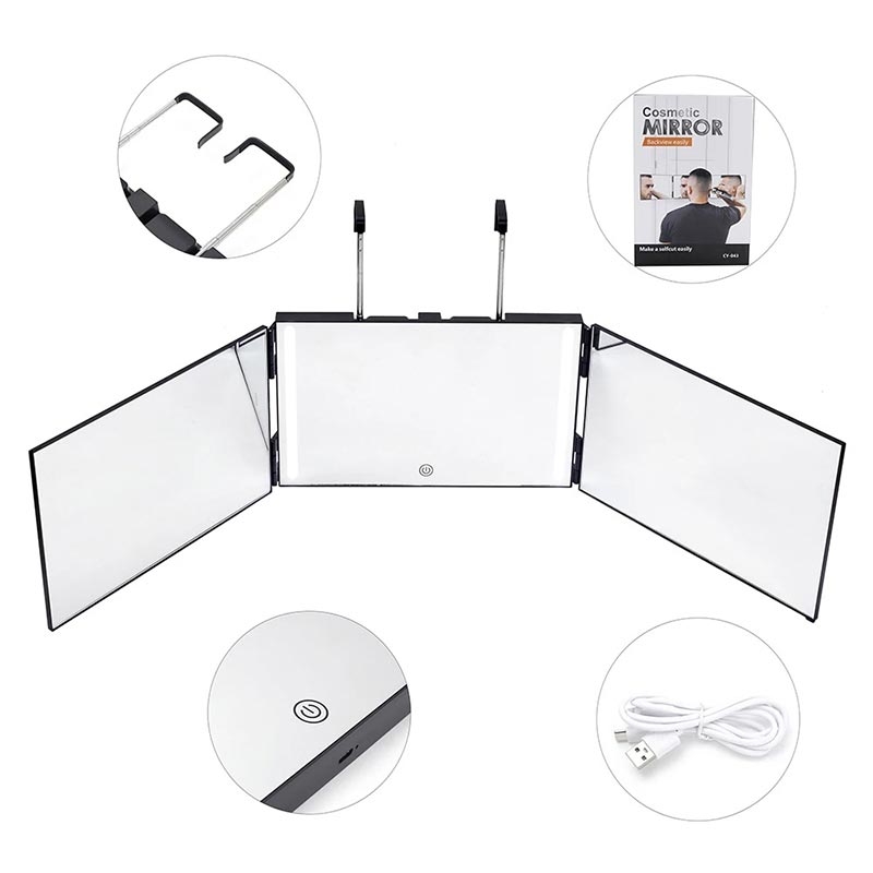 The high-definition led triple folding vanity mirror provides a clear, full-angle view for precise grooming, hairstyling and makeup application. Its tri-fold design allows you to see your face and hair from multiple perspectives, making it easier to achieve professional-level styling at home. Equipped with natural light-simulating LED illumination, the mirror delivers even, soft lighting that highlights every detail without glare.