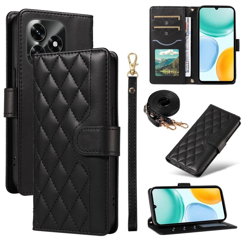 Luxury Quilted Wallet Case with Shoulder & Wrist Strap for Honor X5c Plus - Rhombus Pattern Protective Cover