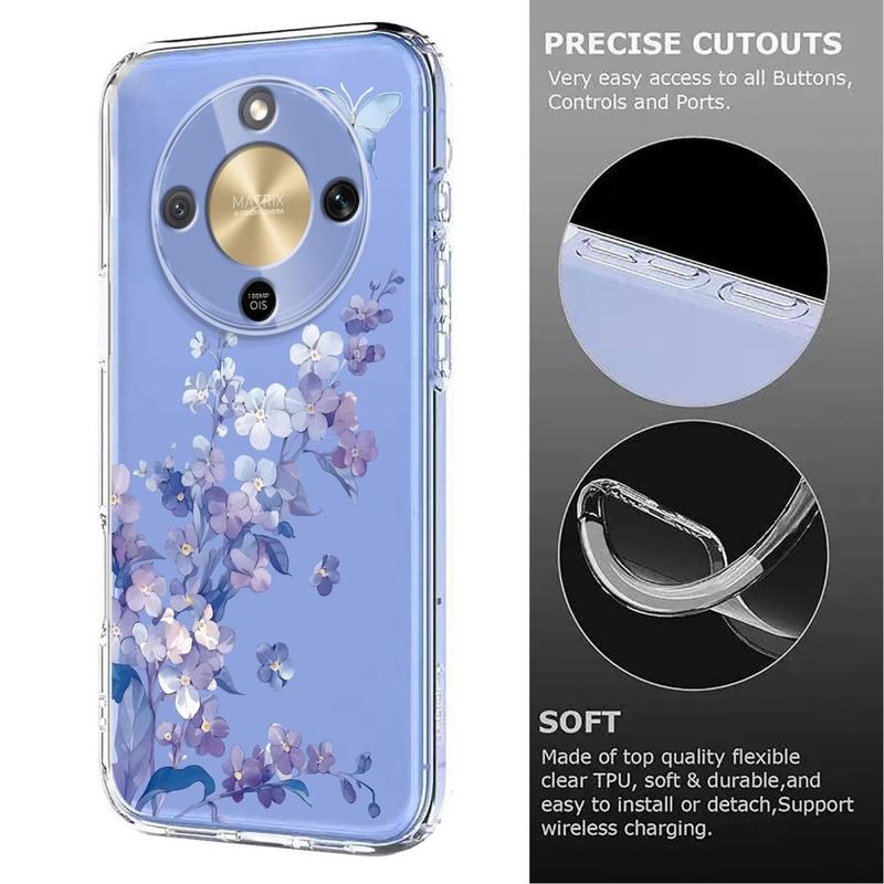 Honor X70/X9d/Magic8 Lite Floral Pattern TPU Case - Purple