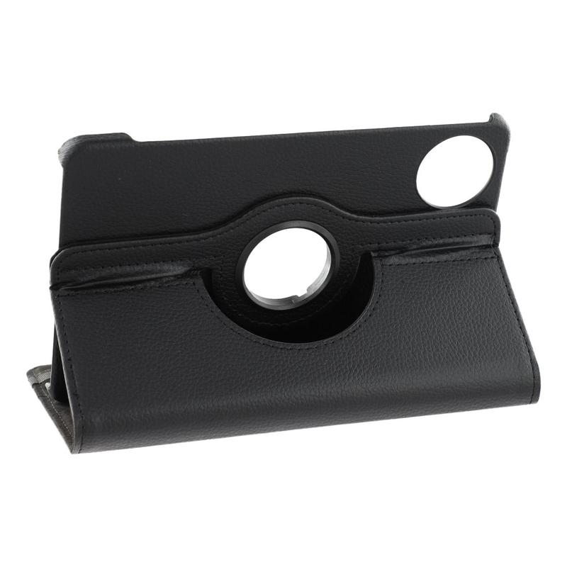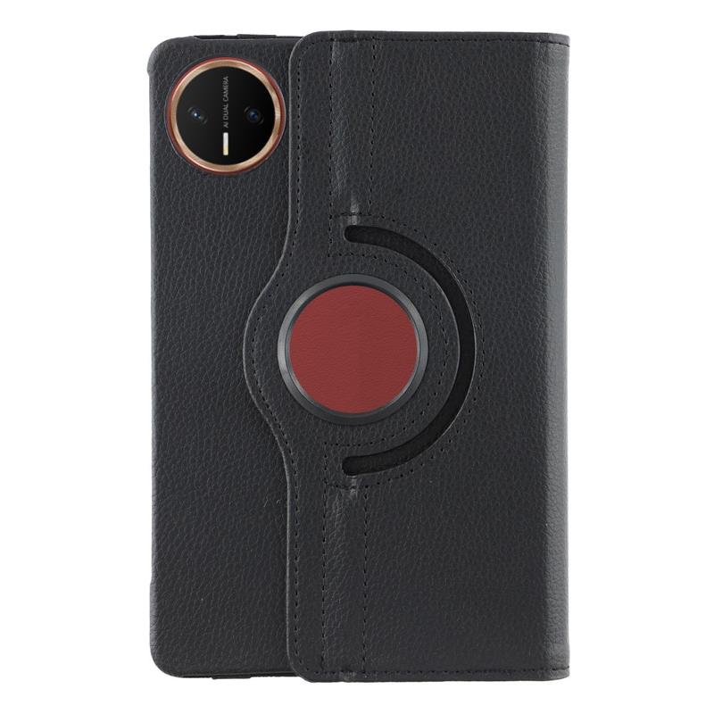 Protect and enhance your Huawei MatePad Mini with this slim rotating-stand case. A tough PC shell teams with a soft, lychee-texture PU leather exterior to shield your Huawei MatePad Mini from bumps and scratches, while the 360 swivel lets you switch effortlessly between portrait e-reading and landscape streaming. A soft inner lining guards the display, and an elastic band keeps the cover securely closed in your bag.
