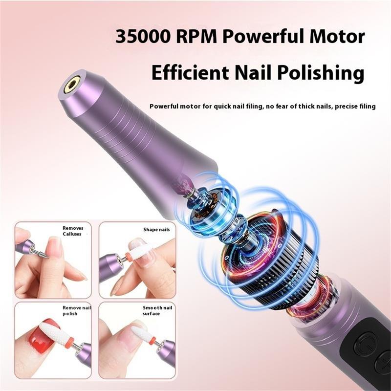 HX-09 Electric Nail File - 4-Speed USB Rechargeable Nail Grinding Machine for Home & Salon Use