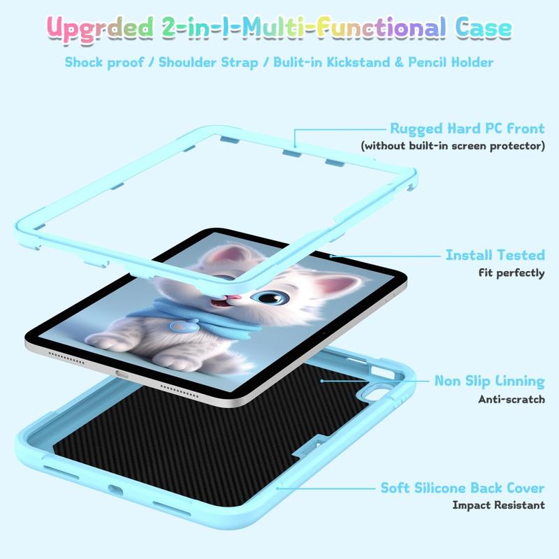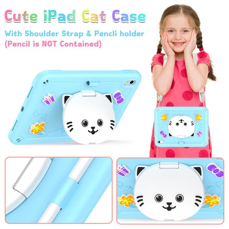 Cute Cat Hybrid Case with Kickstand, Shoulder Strap & Stylus Holder for iPad (2022), iPad (2025)