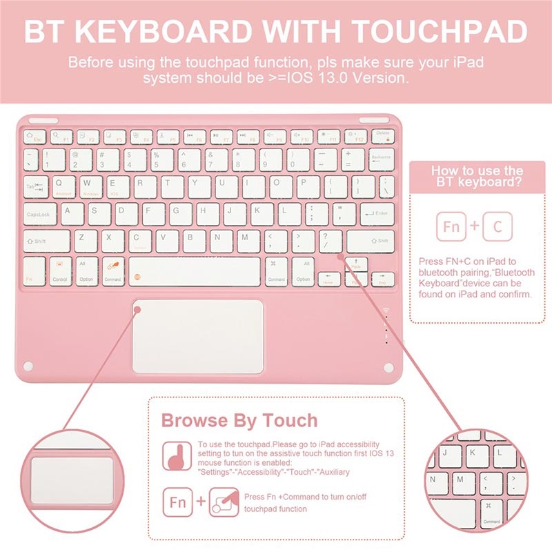 Enhance your iPad Air 11 2026/2025/2024, iPad Air 2022/2020 with the Bluetooth keyboard case, a multifunctional 2-in-1 accessory that combines protection, productivity, and style. Crafted from premium polyrethane, this sleek case provides full protection against scratches, shocks, and fingerprints while maintaining a professional look. The Bluetooth keyboard connects wirelessly for smooth, responsive typing, while the integrated touchpad supports multi-gesture control for effortless navigation. Featuring a backlit keyboard, you can type comfortably even in low-light environments. The built-in adjustable stand offers an ergonomic viewing angle, making it perfect for typing, streaming, or reading. Designed for business, travel, or everyday use, this keyboard case transforms your tablet into a portable workstation.