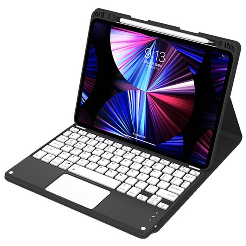 Enhance your iPad Air 13 2026/2025/2024, iPad Pro 12.9 2022/2021/2020/2018 with the Bluetooth keyboard case, a multifunctional 2-in-1 accessory that combines protection, productivity, and style. Crafted from premium polyrethane, this sleek case provides full protection against scratches, shocks, and fingerprints while maintaining a professional look. The Bluetooth keyboard connects wirelessly for smooth, responsive typing, while the integrated touchpad supports multi-gesture control for effortless navigation. Featuring a backlit keyboard, you can type comfortably even in low-light environments. The built-in adjustable stand offers an ergonomic viewing angle, making it perfect for typing, streaming, or reading. Designed for business, travel, or everyday use, this keyboard case transforms your tablet into a portable workstation.