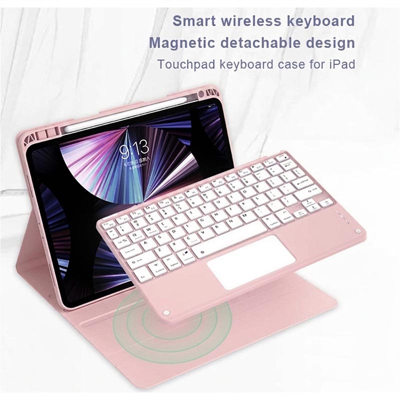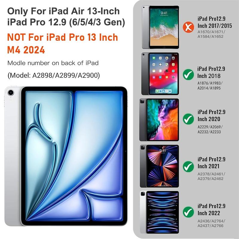Enhance your iPad Air 13 2026/2025/2024, iPad Pro 12.9 2022/2021/2020/2018 with the Bluetooth keyboard case, a multifunctional 2-in-1 accessory that combines protection, productivity, and style. Crafted from premium polyrethane, this sleek case provides full protection against scratches, shocks, and fingerprints while maintaining a professional look. The Bluetooth keyboard connects wirelessly for smooth, responsive typing, while the integrated touchpad supports multi-gesture control for effortless navigation. Featuring a backlit keyboard, you can type comfortably even in low-light environments. The built-in adjustable stand offers an ergonomic viewing angle, making it perfect for typing, streaming, or reading. Designed for business, travel, or everyday use, this keyboard case transforms your tablet into a portable workstation.