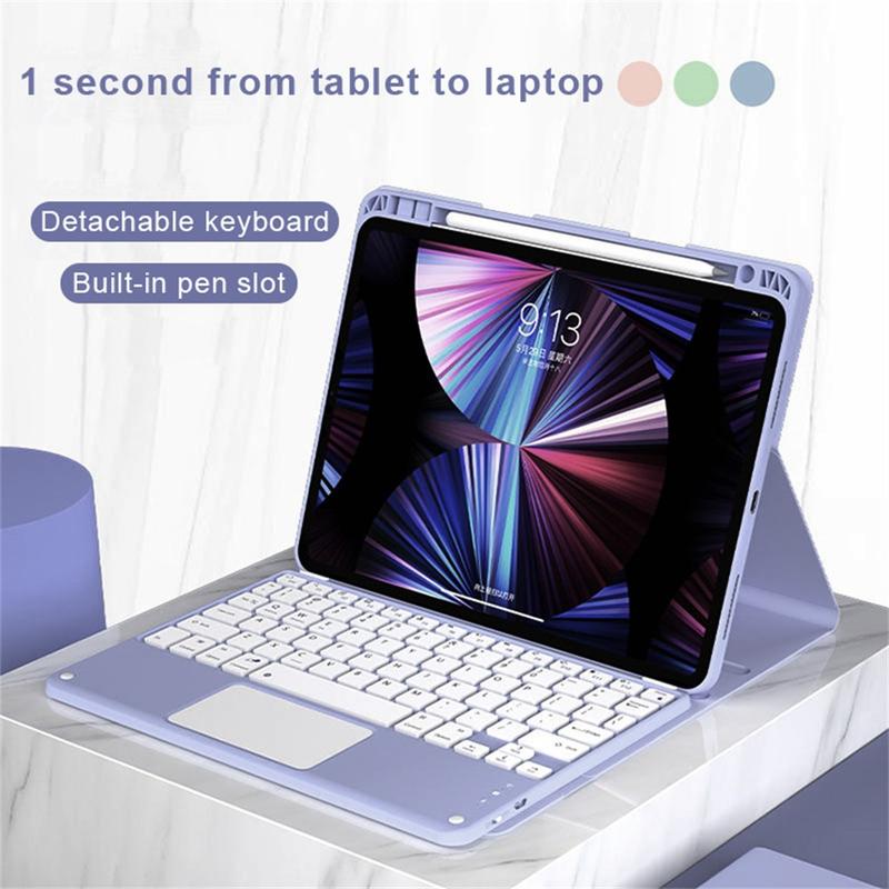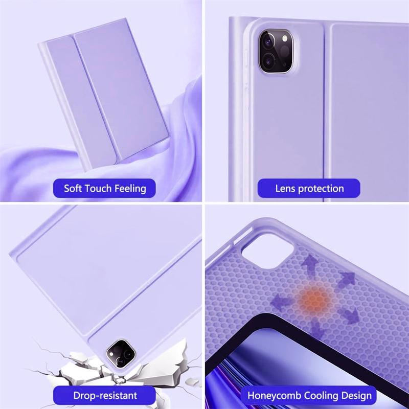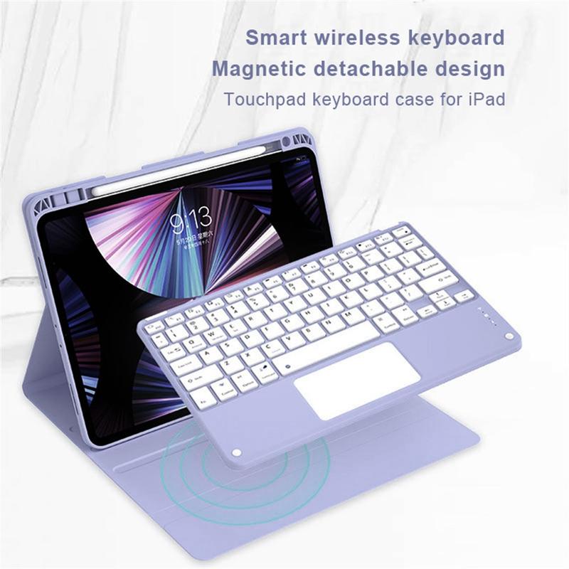 Enhance your iPad Air 13 2026/2025/2024, iPad Pro 12.9 2022/2021/2020/2018 with the Bluetooth keyboard case, a multifunctional 2-in-1 accessory that combines protection, productivity, and style. Crafted from premium polyrethane, this sleek case provides full protection against scratches, shocks, and fingerprints while maintaining a professional look. The Bluetooth keyboard connects wirelessly for smooth, responsive typing, while the integrated touchpad supports multi-gesture control for effortless navigation. Featuring a backlit keyboard, you can type comfortably even in low-light environments. The built-in adjustable stand offers an ergonomic viewing angle, making it perfect for typing, streaming, or reading. Designed for business, travel, or everyday use, this keyboard case transforms your tablet into a portable workstation.