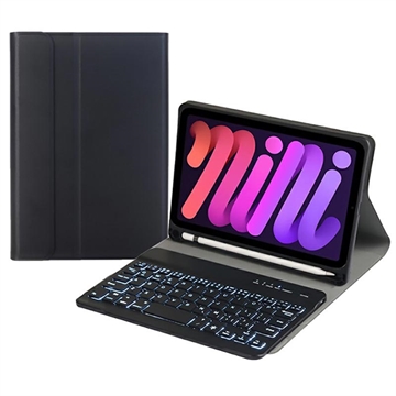 • iPad Mini (2021), iPad Mini (2024) Bluetooth Keyboard Case with Backlit, Touchpad and Stand - US Keyboard Layout