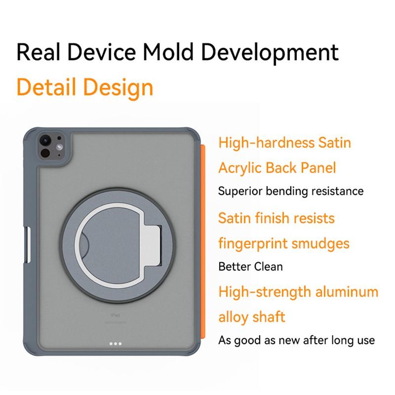 - 360° Rotating Stand – Equipped with a reinforced aluminum alloy hinge, this stand offers smooth 360° rotation and multiple stable viewing angles - ideal for typing, sketching, or video calls.