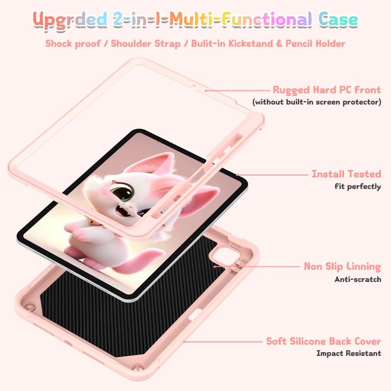 Cute Cat Hybrid Case with Kickstand, Shoulder Strap & Stylus Holder for iPad Pro 11 (2024), iPad Pro 11 (2025)