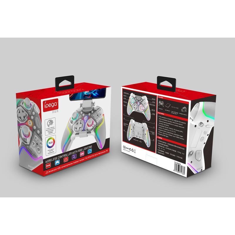 iPega PG-9666BH Wireless RGB Game Controller - Hall Effect Sticks and Triggers, Turbo, Programmable Buttons, Dual Vibration - For Android/iOS (MFi)/PS3/PS4/PC/Switch