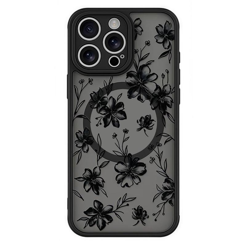 iPhone 12 Pro Stylish Protective Magnetic Case - Ink Flowers