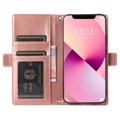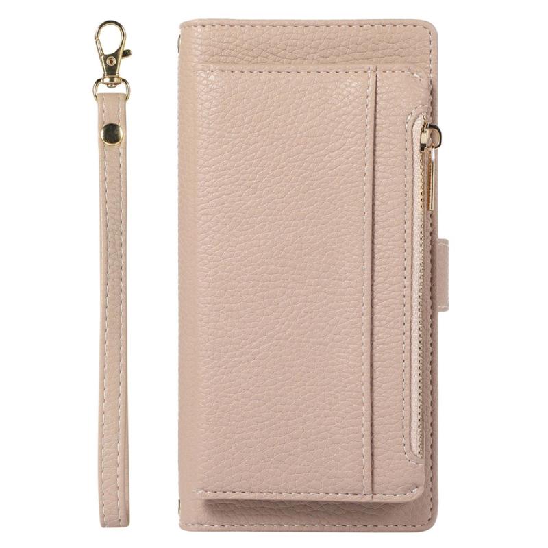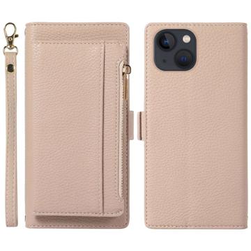 Anti-fall Litchi Texture Phone Cover For iPhone 14 Magnetic Detachable Zipper Wallet 2-in-1 Phone Case Stand with Strap