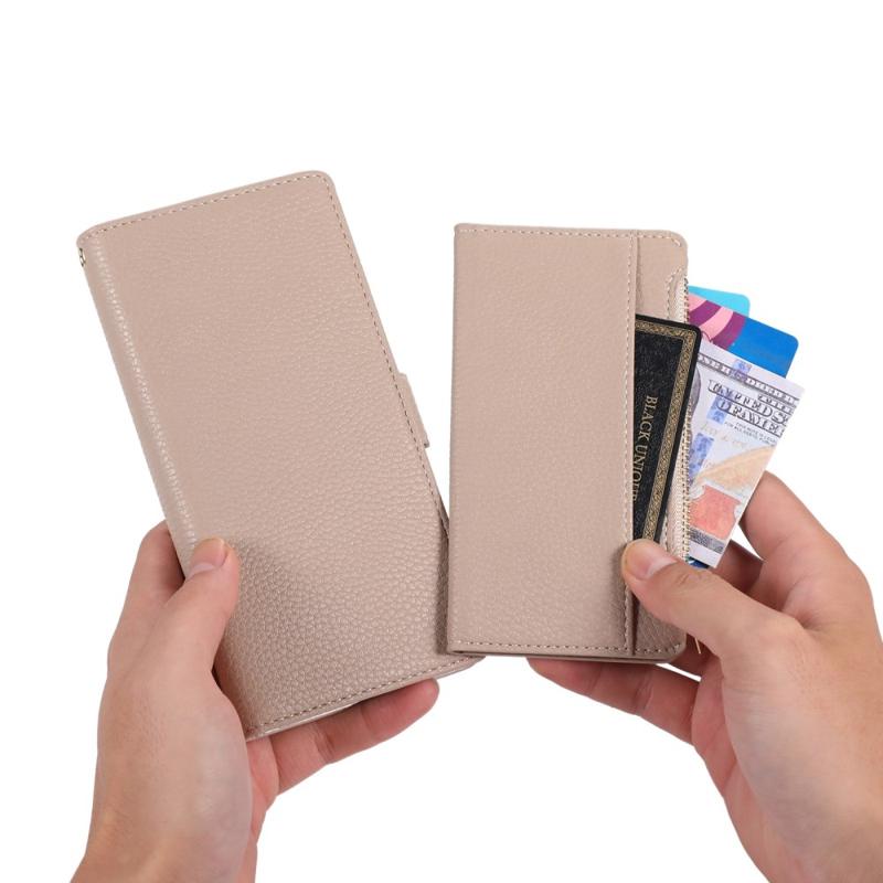 - The bi-fold zippered wallet and the litchi textured mobile phone leather case can be split to use, and be attached together by magnetism