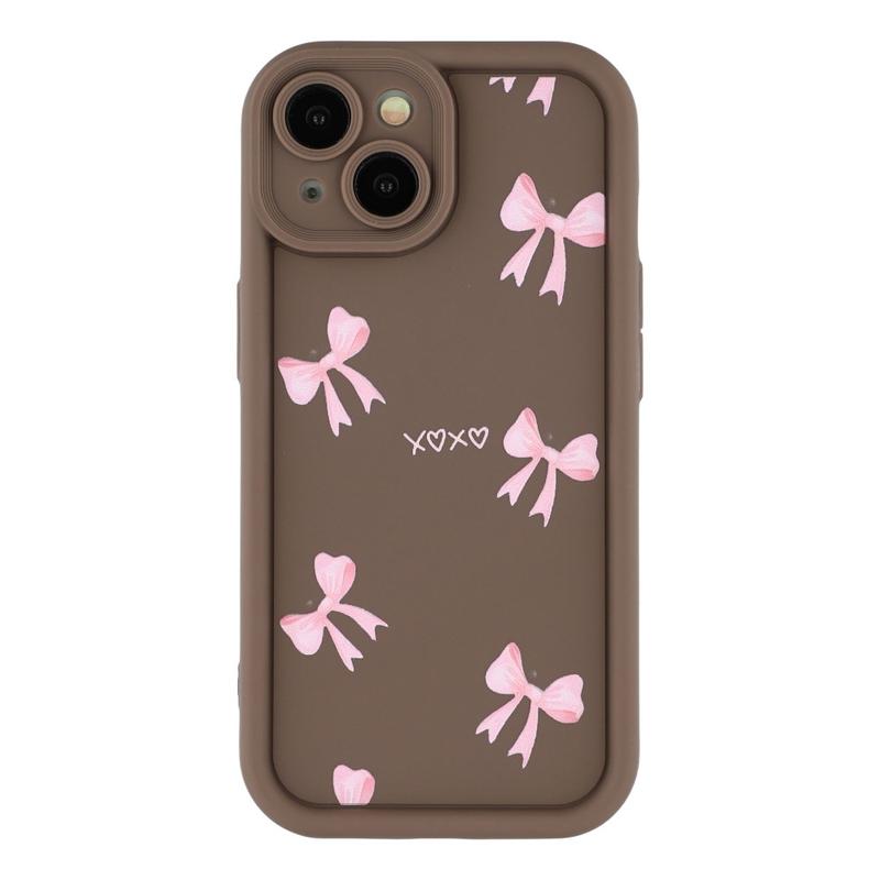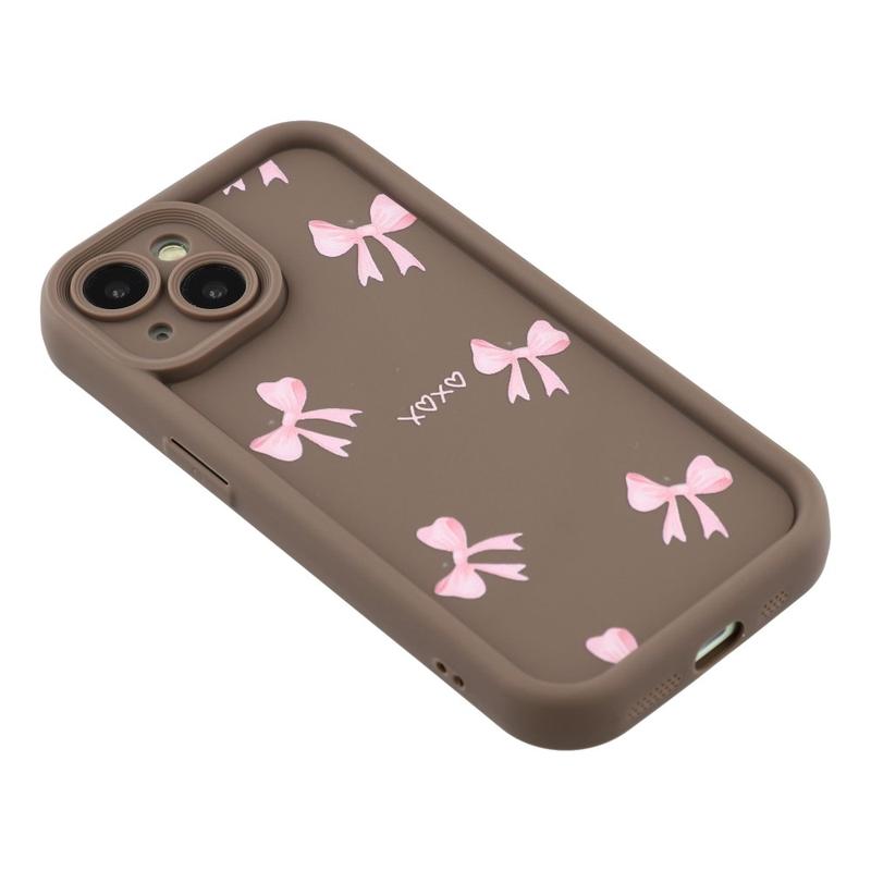 iPhone 14 Plus Stylish Shockproof TPU Case with Raised Edges - Brown / Bow