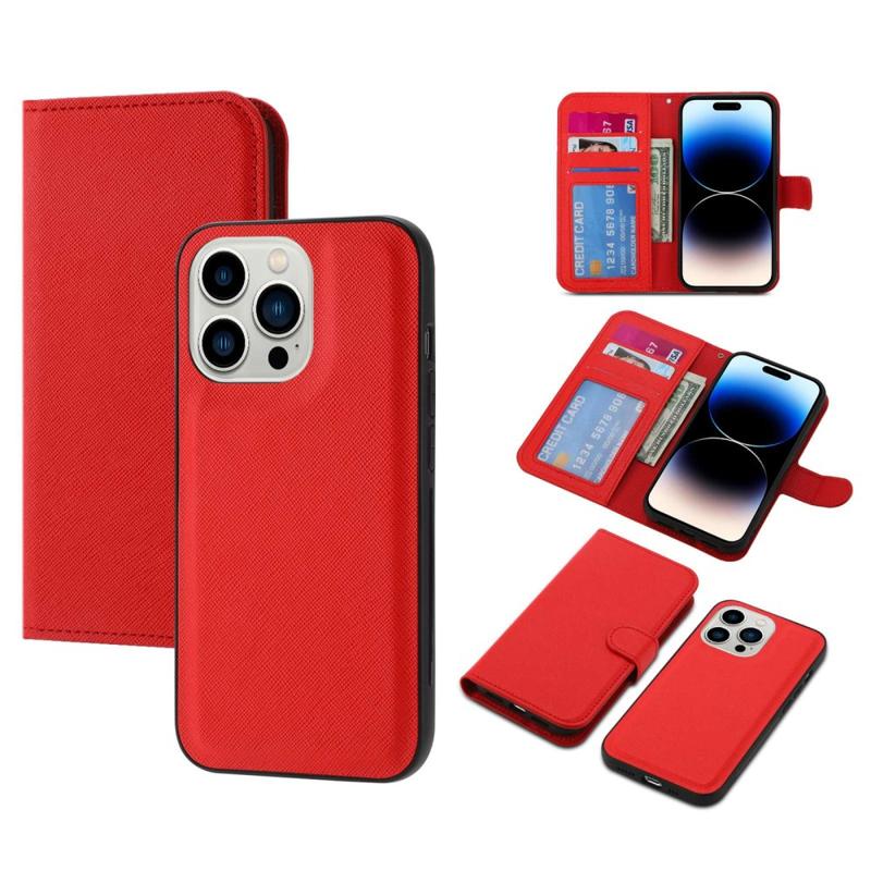For iPhone 14 Pro Detachable TPU Back Case Cross Texture PU Leather Drop-proof Cover Flip Stand Wallet Shell
