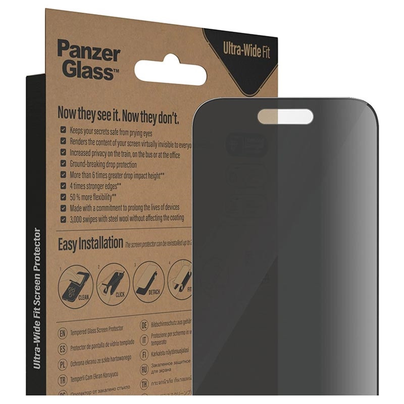 PanzerGlass Ultra-Wide Fit Privacy EasyAligner AntiBacterial Tempered Glass Screen Protector for iPhone 14 Pro