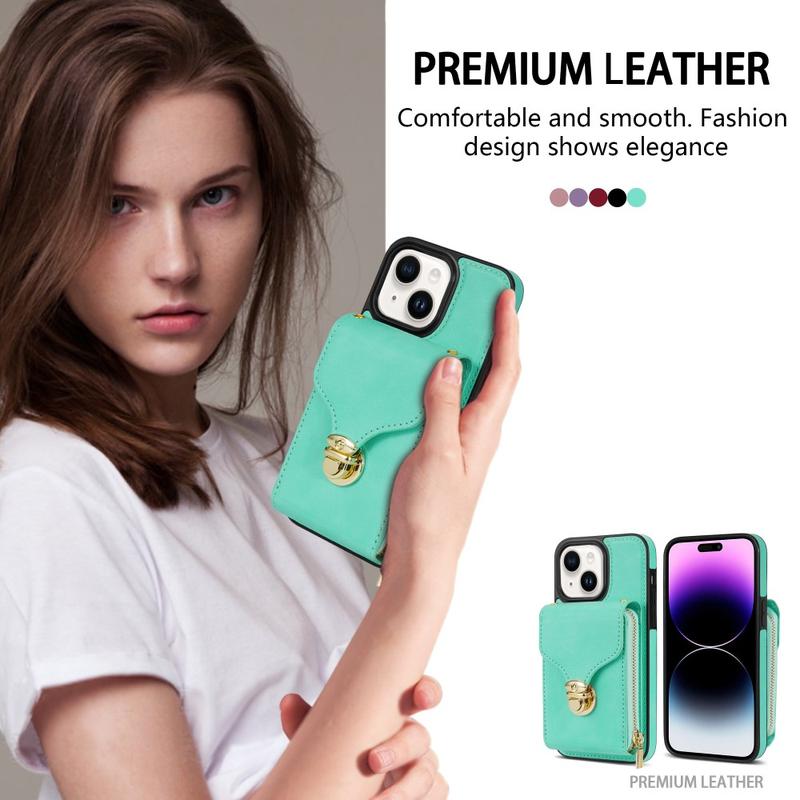 iPhone 15 All-in-One Case with Wallet & Strap - Mint
