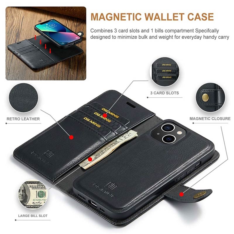 DG.Ming 2-in-1 Detachable Wallet Leather Case for iPhone 15