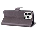 iPhone 15 Pro Owl Rhinestone Wallet Case - Grey