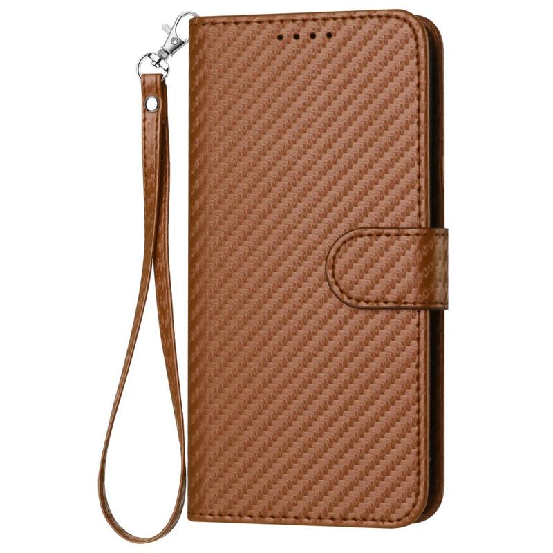 Premium Wallet Case with Strap for iPhone 15 Pro Max - Carbon Fiber Texture