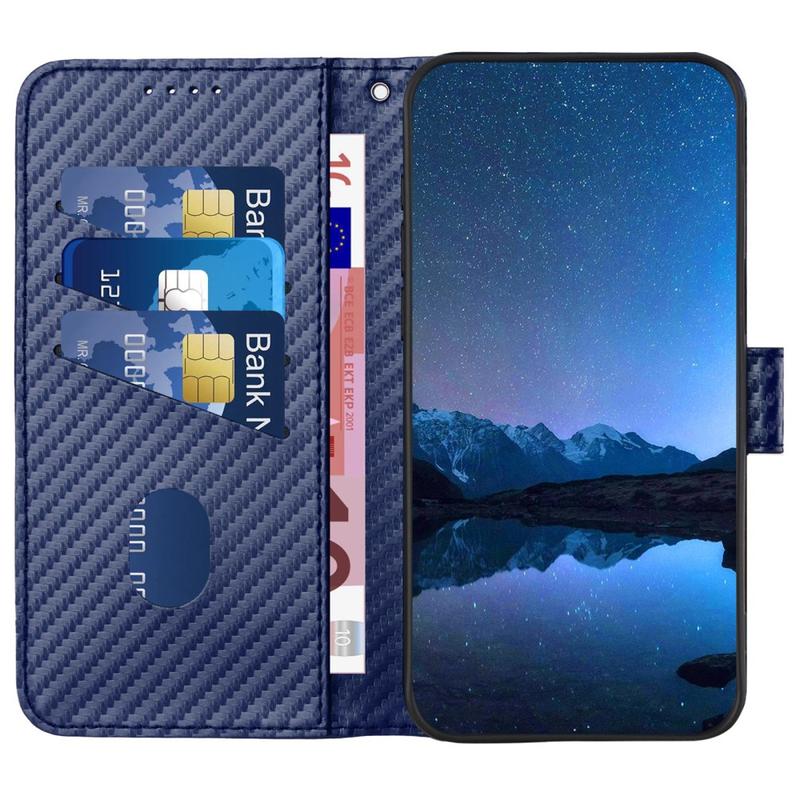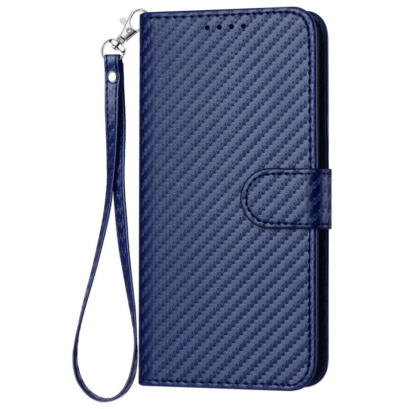 iPhone 15 Pro Premium Wallet Case with Strap - Carbon Fiber Texture - Carbon Blue