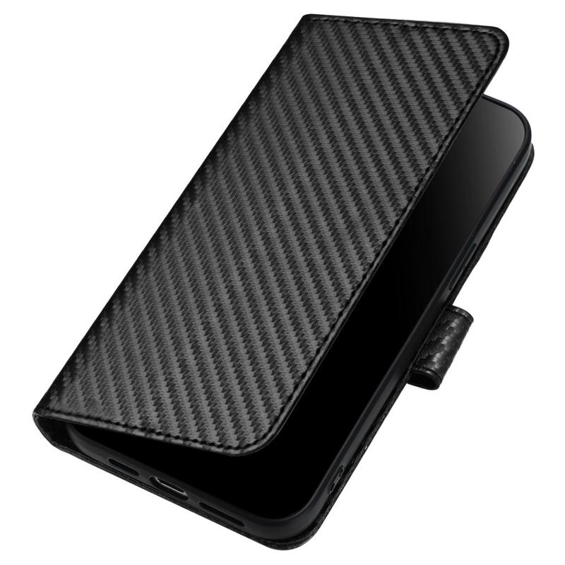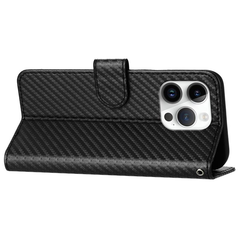 Premium Wallet Case with Strap for iPhone 15 Pro - Carbon Fiber Texture