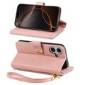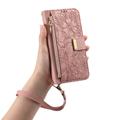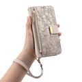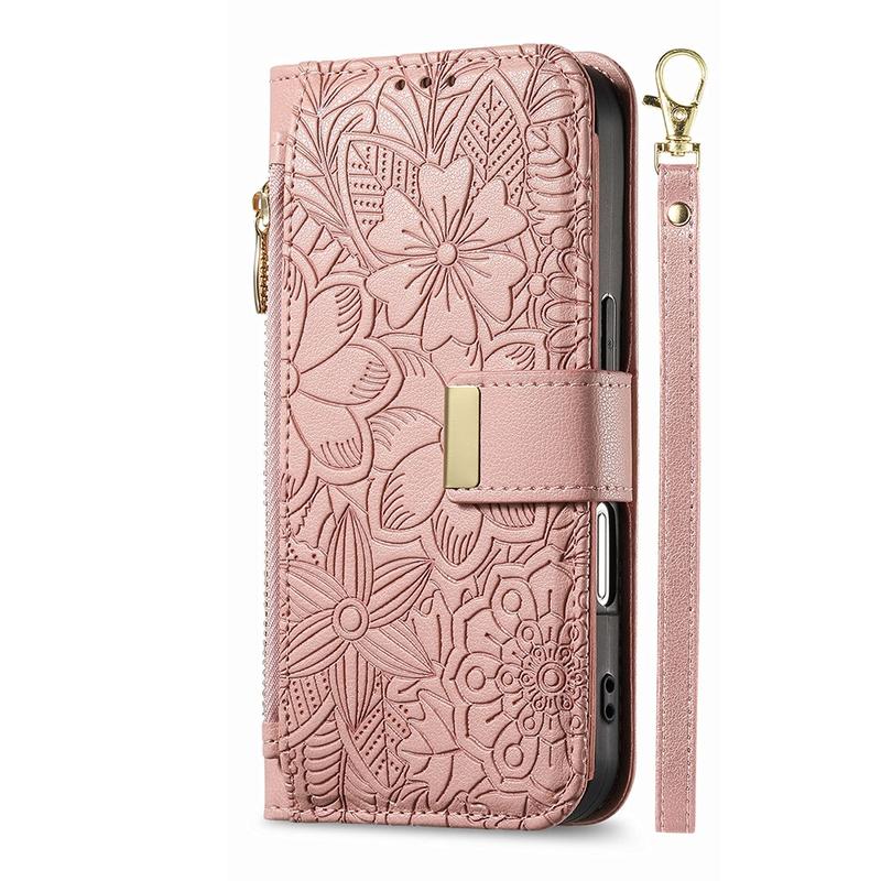 Floral & Leaf Pattern Wallet Case with Zipper Pocket & Wrist Strap for iPhone 16