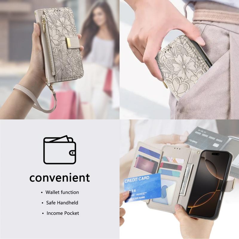 Unlike ordinary iPhone 16 cases, this all-in-one wallet cover combines protection, organization, and elegance. The floral imprinting gives it a stylish edge, while the zipper pocket and wrist strap provide unmatched convenience for daily life and travel.