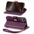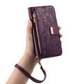 Floral & Leaf Pattern Wallet Case with Zipper Pocket & Wrist Strap for iPhone 16