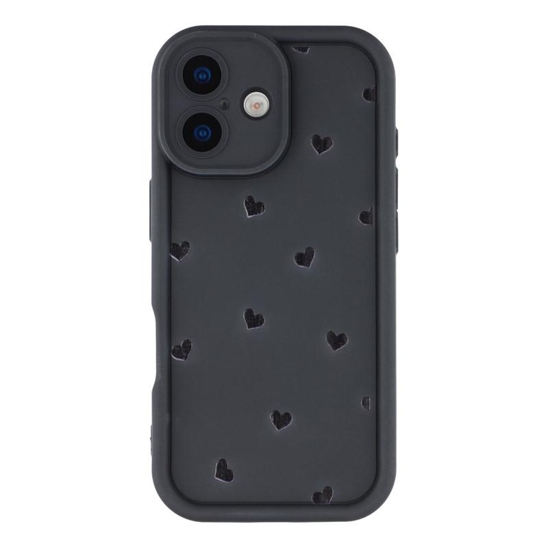 iPhone 16 Heart Pattern Shockproof TPU Case with Raised Edges - Black