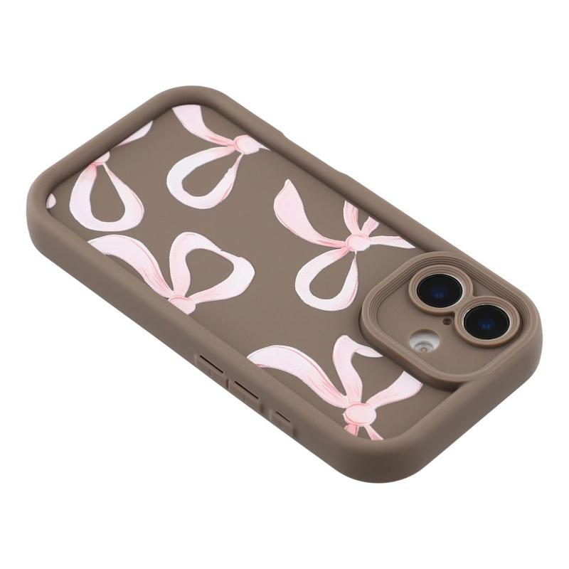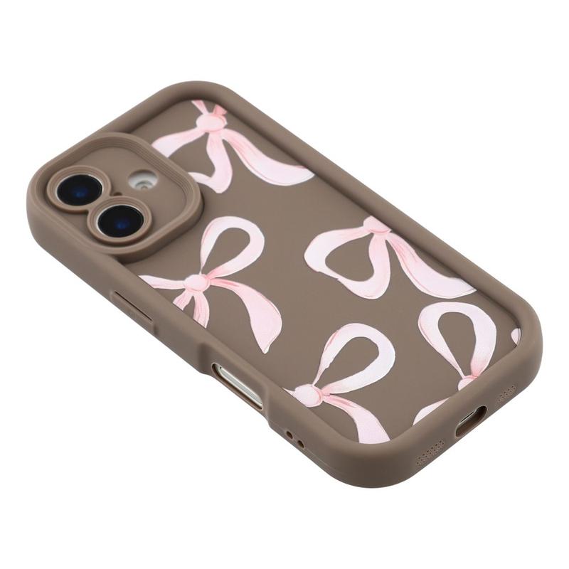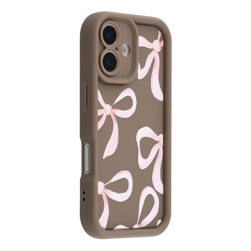 iPhone 16 Plus Stylish Shockproof TPU Case with Raised Edges - Brown / Big Bow