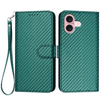 • Premium Wallet Case with Strap for iPhone 16 - Carbon Fiber Texture