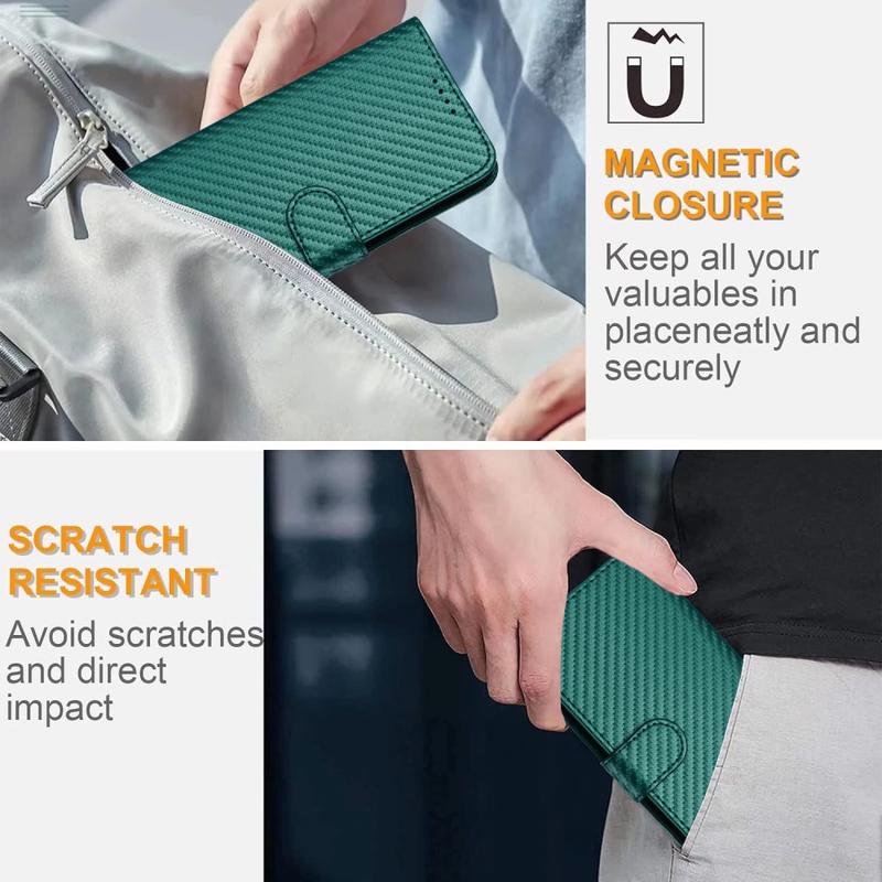 This wallet case offers elegant design, reliable protection, and smart usability. The textured carbon fiber finish adds a modern, professional look, while the inner TPU layer absorbs shocks from accidental drops. With hands-free functionality and a detachable strap, it’s built for comfort and versatility.