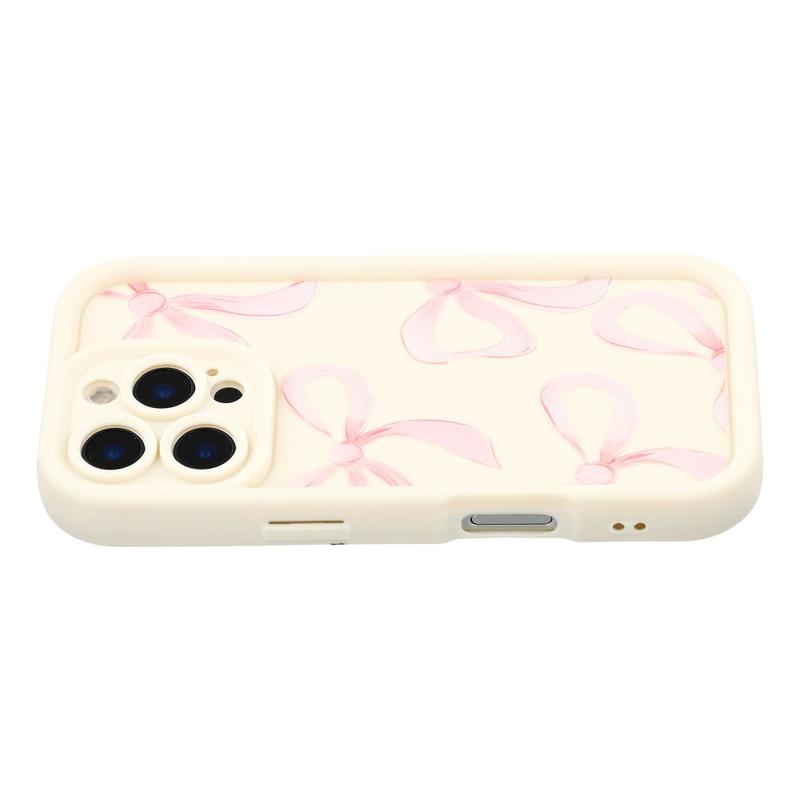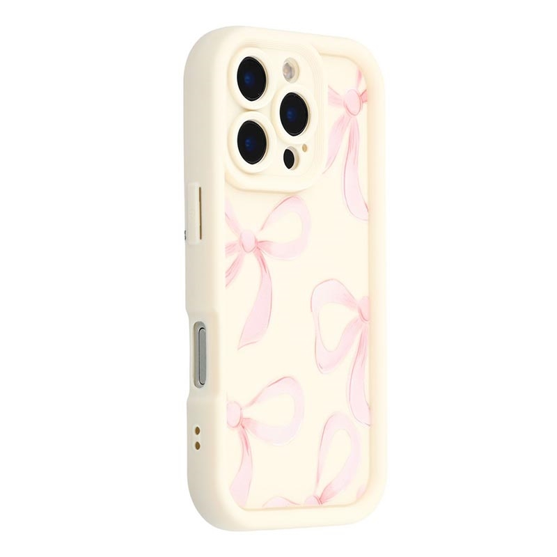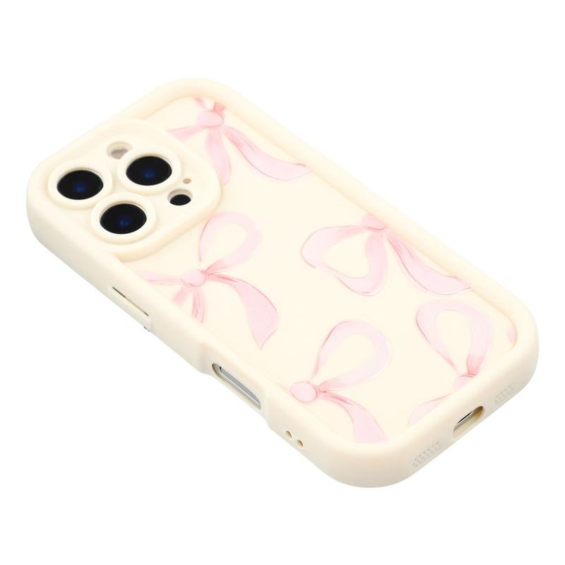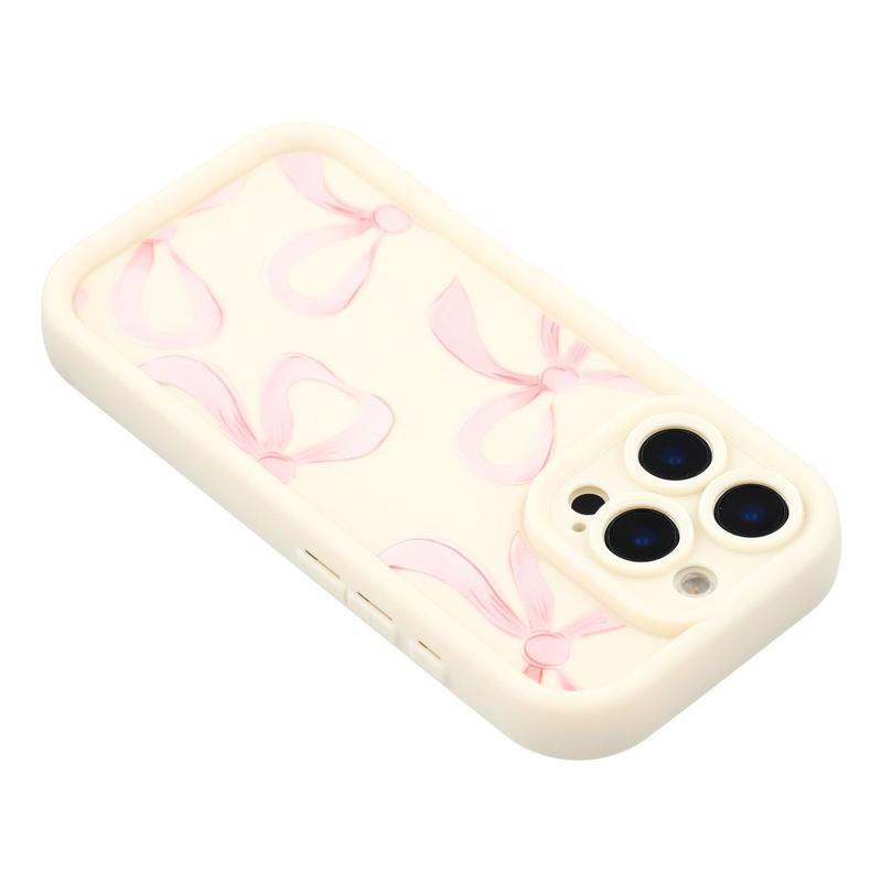iPhone 16 Pro Stylish Shockproof TPU Case with Raised Edges - White / Big Bow