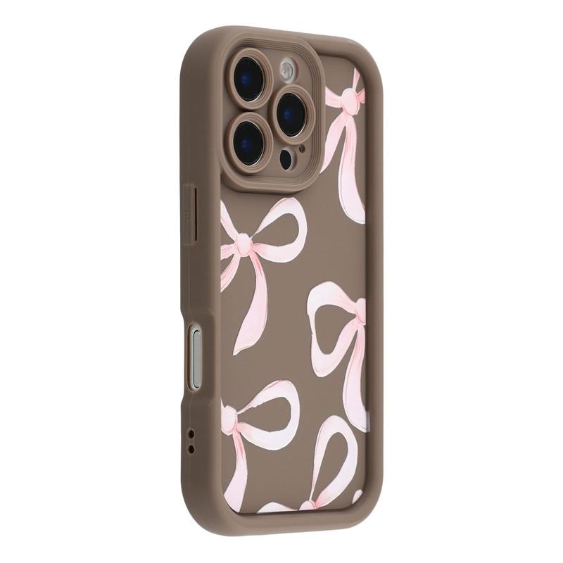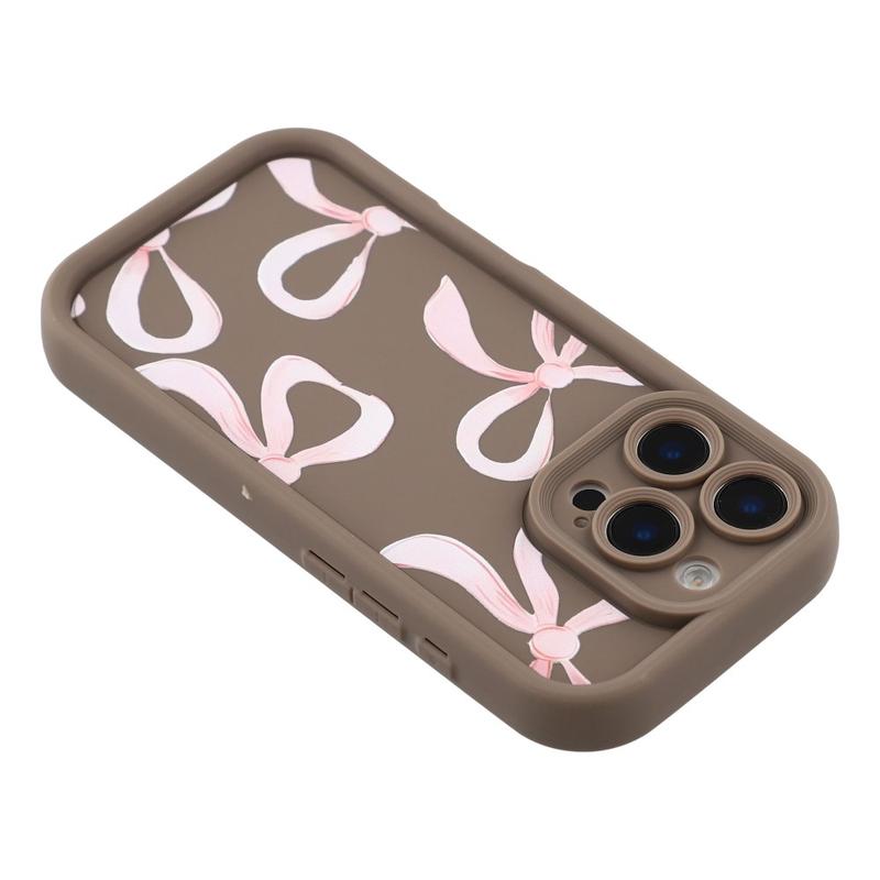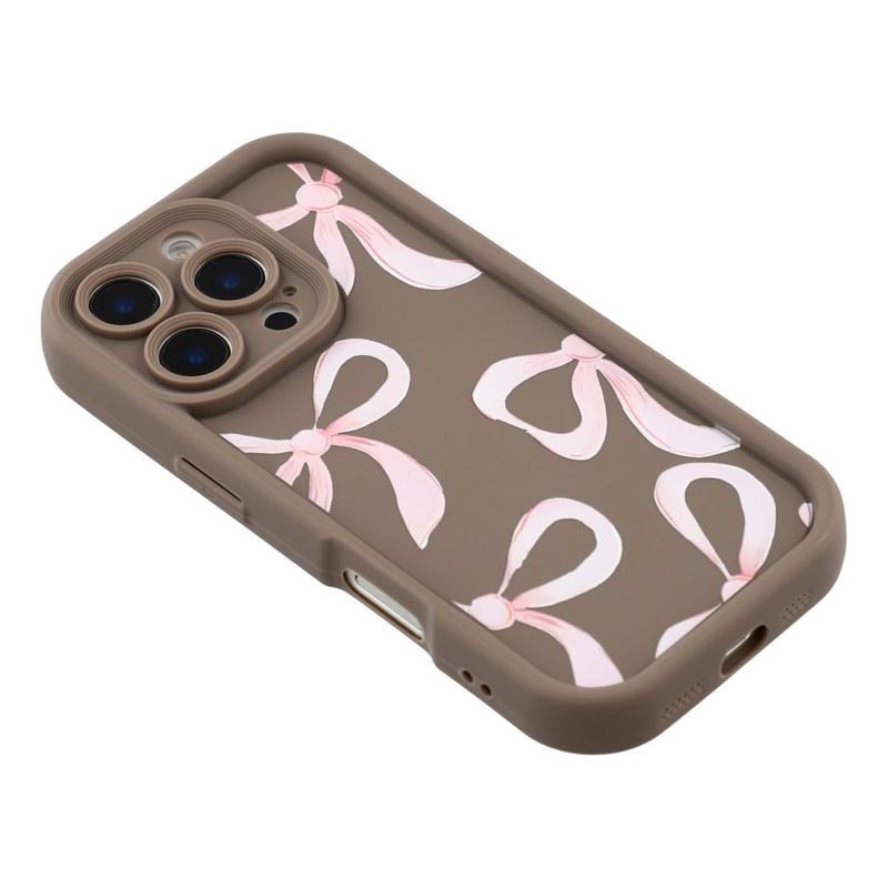 iPhone 16 Pro Stylish Shockproof TPU Case with Raised Edges - Brown / Big Bow