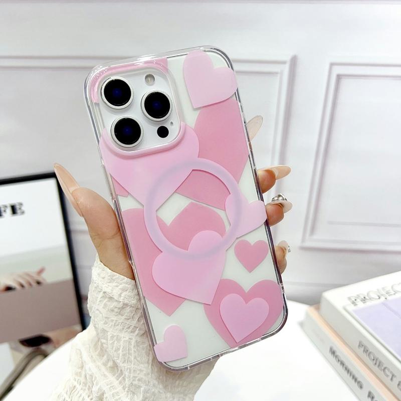 Add personality and protection to your iPhone 16 Pro with this heart-pattern magnetic case. Designed with bold and playful oversized hearts, it blends fashion with functionality. The slim hybrid design of TPU and PC ensures dependable protection while maintaining MagSafe compatibility for wireless charging and accessories.