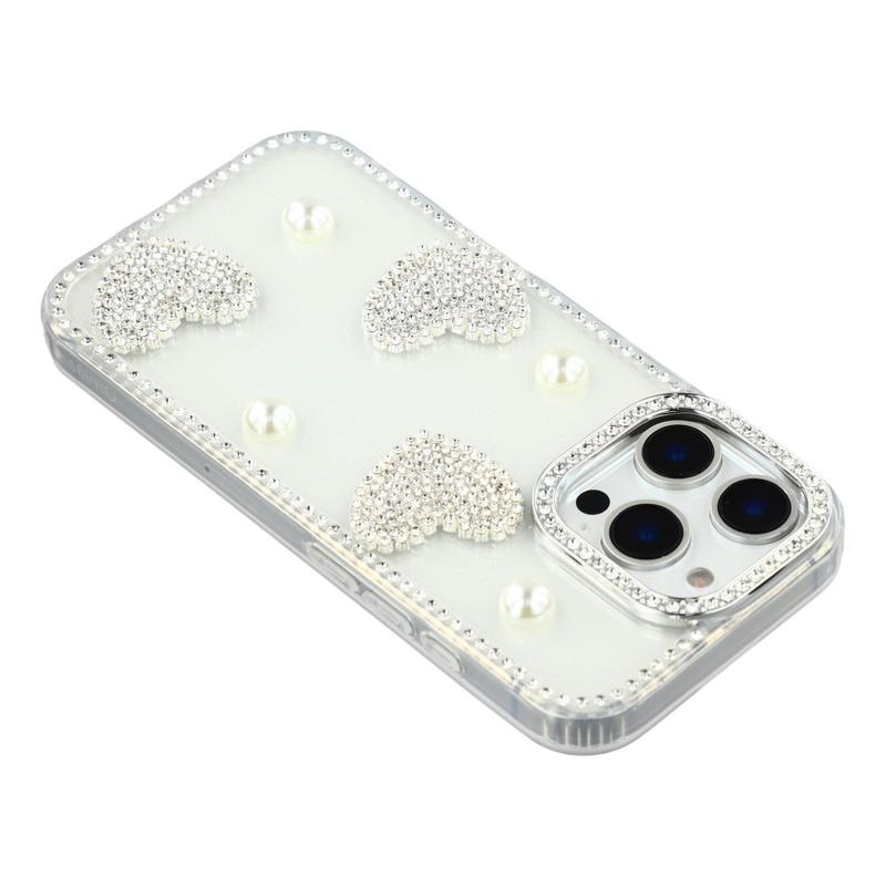 This iPhone 16 Pro case combines reliable everyday protection with glamorous style. Featuring shimmering rhinestones around the edges and sparkling pearl heart decorations on the back, it turns your iPhone 16 Pro into a fashionable accessory while keeping it safe from scratches and bumps.