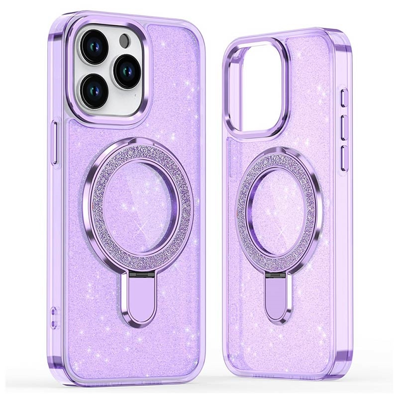 iPhone 16 Pro Max Glitter Hybrid Case with Kickstand - MagSafe Compatible - Purple