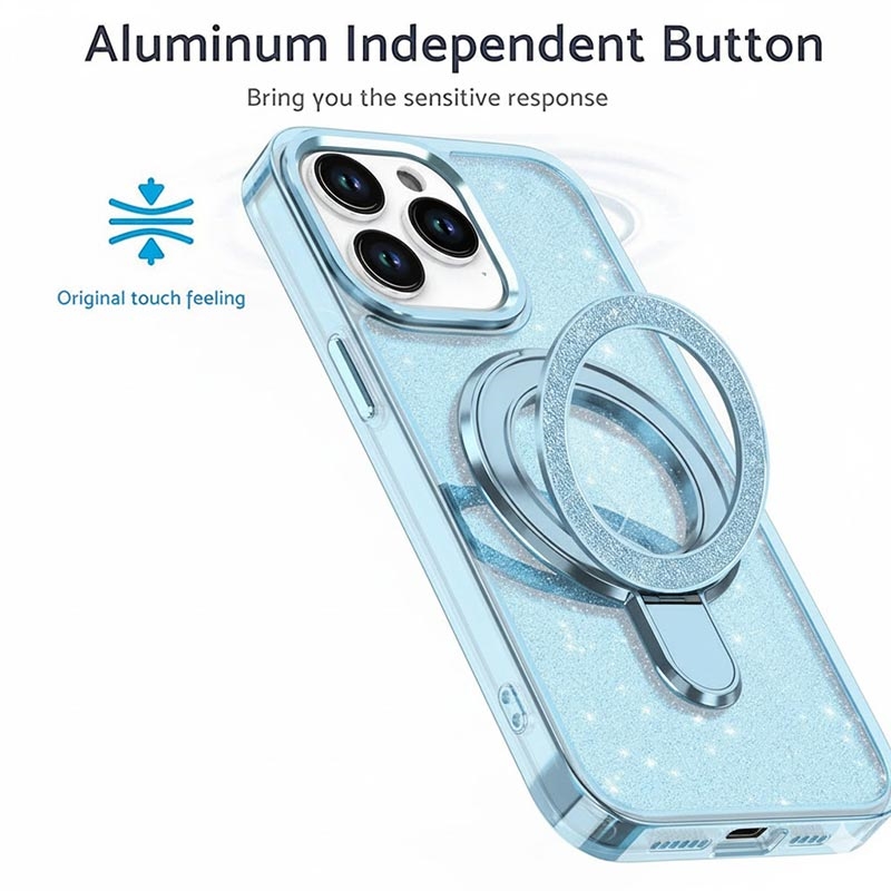 iPhone 16 Pro Glitter Hybrid Case with Kickstand - MagSafe Compatible - Blue