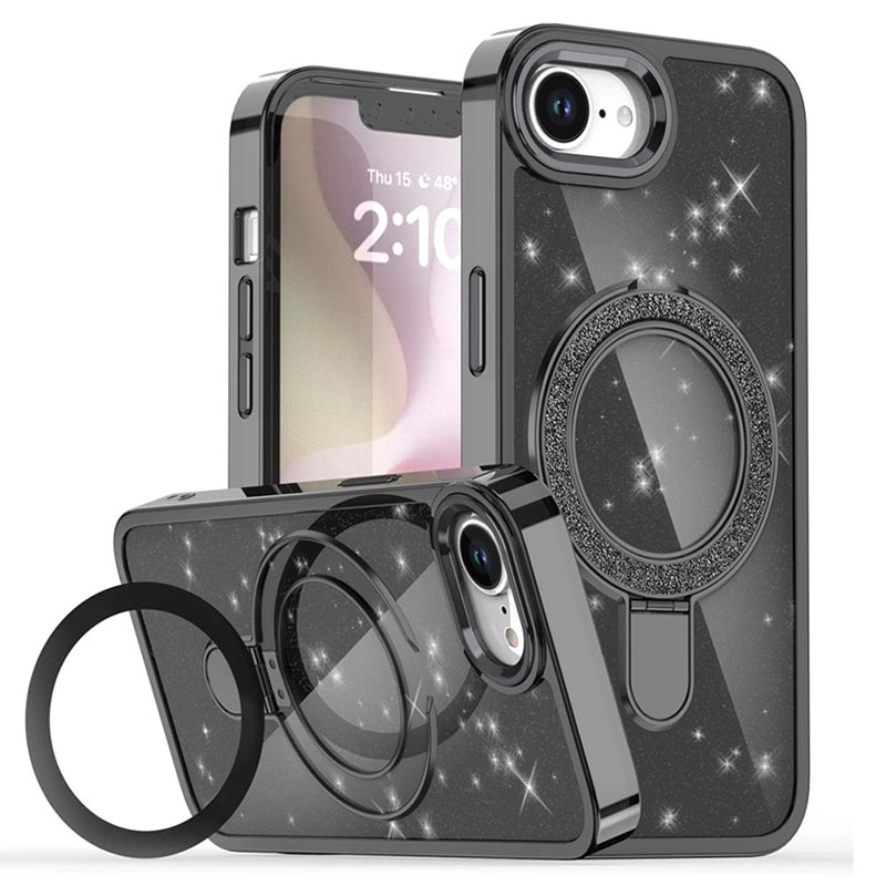 Glitter Case with Kickstand for iPhone 16e - MagSafe Compatible TPU + PC Hybrid Kickstand Cover