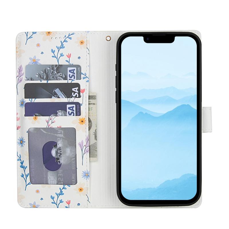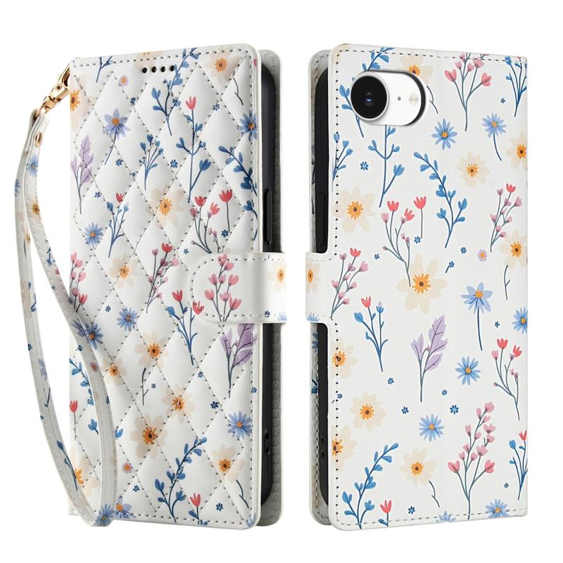Rhombic Floral Wallet Case for iPhone 16e - with Strap and Card Slots