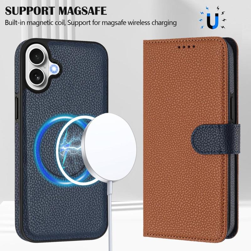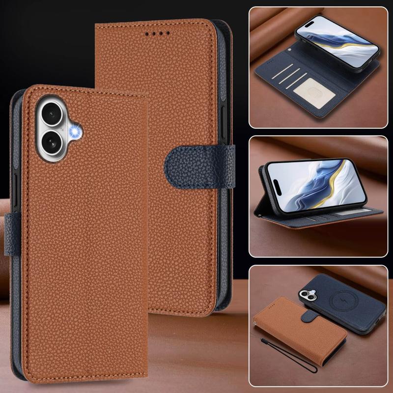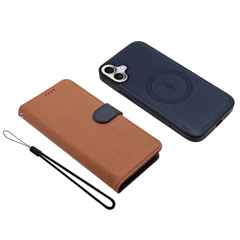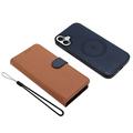 iPhone 17 Detachable Wallet Case with MagSafe, RFID Protection & Hand Strap - Brown / Blue