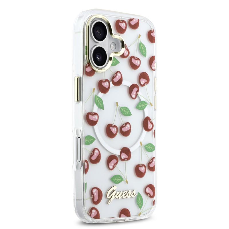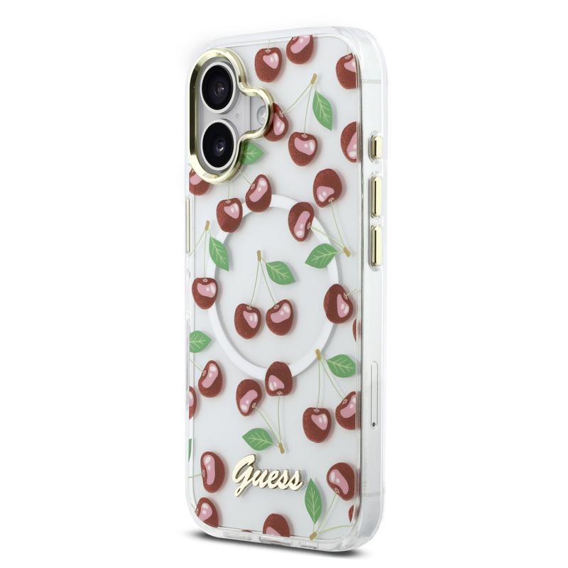 iPhone 17 Guess IML Glitter Cherry Hybrid Case - MagSafe Compatible - Transparent